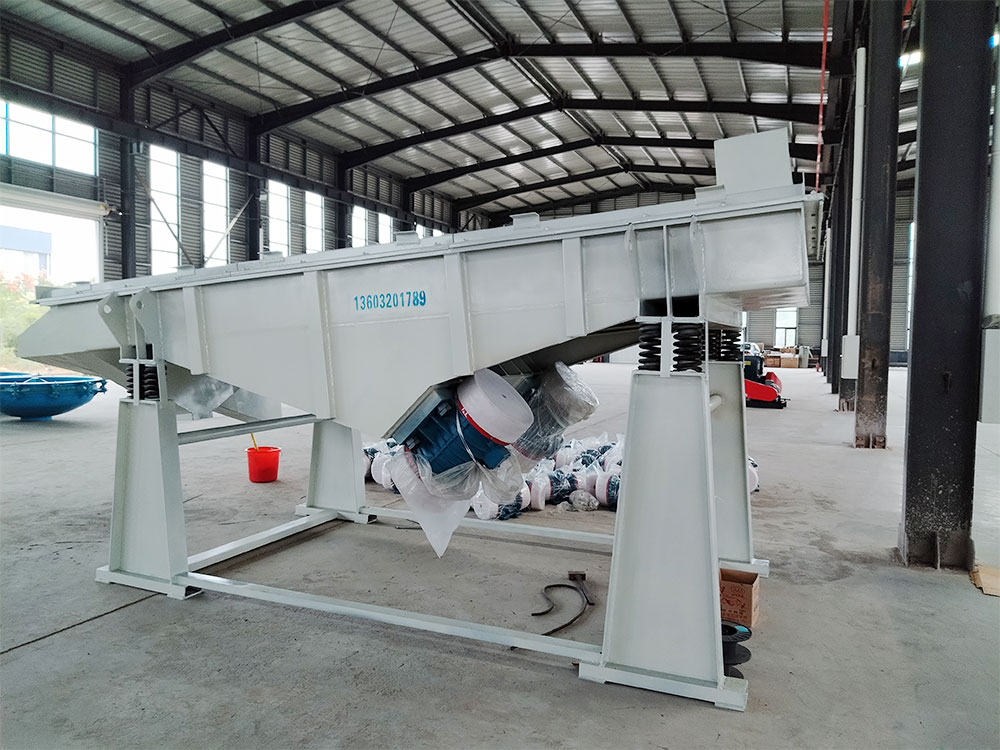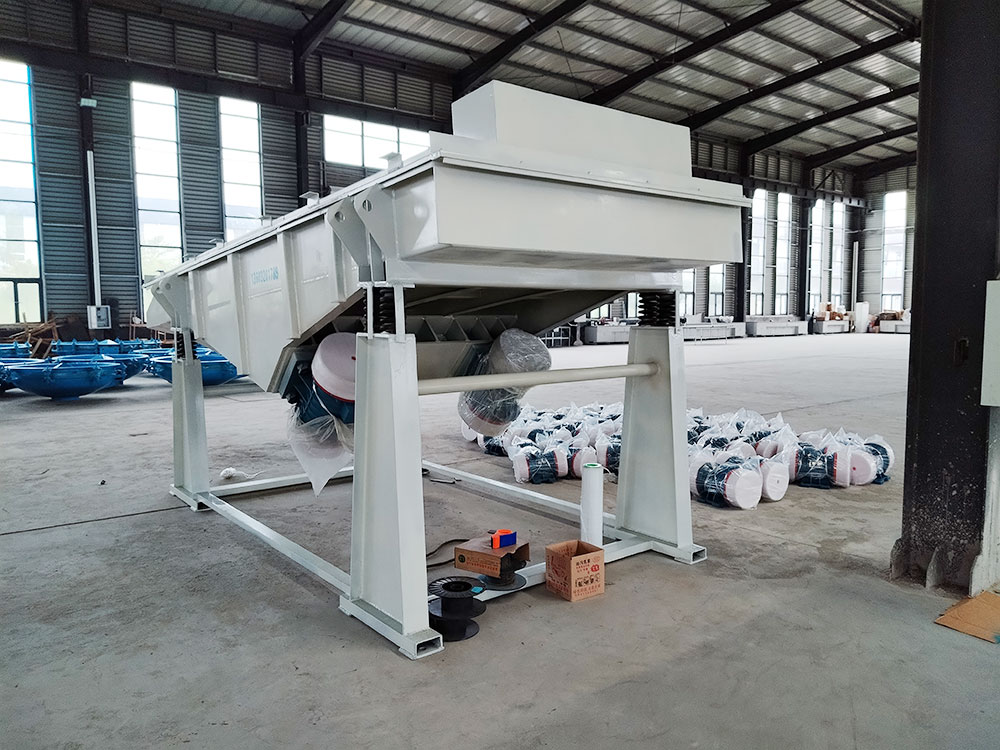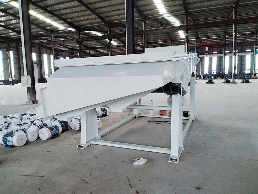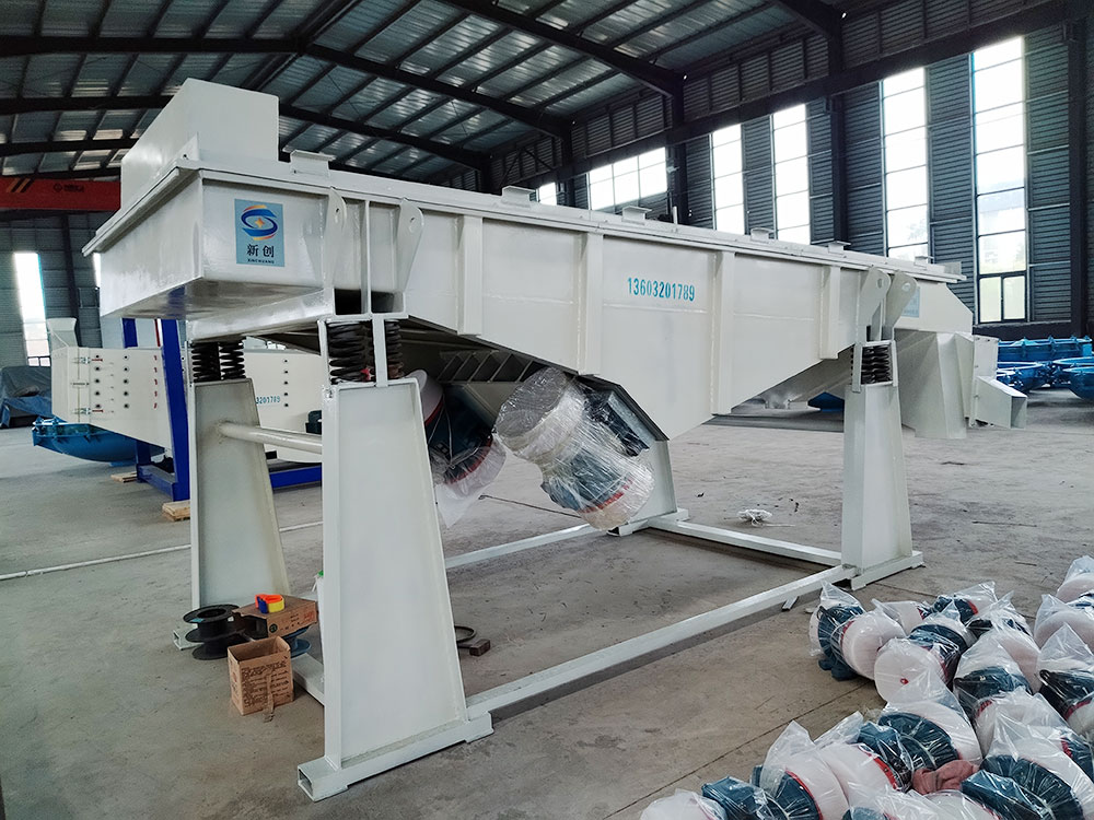 產(chǎn)品描述: 用于煤炭、水電、礦山、建材、化工、塑料、磨料、醫(yī)藥、糧食、炭素、化肥等行的設(shè)備 直線篩(直線振動篩)利用振動電機激振作為振動源,使物料在篩網(wǎng)上被拋起,同時向前作直線運動,物料從給料機均勻地進入篩分機的進料口,通過多層篩網(wǎng)產(chǎn)生數(shù)種規(guī)格的篩上物、篩下物、分別從各自的出口排出。具有耗能低、產(chǎn)量高、結(jié)構(gòu)簡單、易維修、全封閉結(jié)構(gòu),無粉塵溢散,自動排料,更適合于流水線作業(yè)。 工作原理 ZSG系列振動篩工作時,兩電機同步反向旋轉(zhuǎn)使激振器產(chǎn)生反向激振力,迫使篩體帶動篩網(wǎng)做縱向運動,使其上的物料受激振力而周期性向前拋出一個射程,從而完成物料篩分作業(yè). 直線振動篩是雙振動電機驅(qū)動。當兩臺振動電機做同步、反缶旋轉(zhuǎn)時,其偏心塊所產(chǎn)生的激振力在平行于電機軸線的方向相互抵消,在垂直于電機軸的方向疊為一合力,因此篩機的運動軌跡為一直線。兩電機軸相對篩面有一傾角,在激振力和物料自重力的合力作用下,物料在篩面上被拋起跳躍式向前作直線運動,從而達到對物料進行篩選和分級的目的。適用于粒度在0.074-5mm、含水量小于70%、無粘性的各種干式粉狀物料的篩分。給料粒度不大于10mm?! ZSF直線振動篩主要特點及適于行業(yè): 篩分精度高、處理量大、結(jié)構(gòu)簡單、耗能少、噪音低、篩網(wǎng)使用壽命長、密封性好、極少粉塵溢散、維修方便、可用于流水線生產(chǎn)中的自動化作業(yè)。 廣泛應(yīng)用于化工、食品、塑料、醫(yī)藥、冶金、玻璃、建材、糧食、化肥、磨料、陶瓷等行業(yè)中干式粉狀或顆粒狀物料的篩分?! 』咎攸c 穩(wěn)定可靠、消耗少、噪音低、壽命長、振型穩(wěn)、篩分效率高等。 DZSF直線振動篩主要特點: 1、密封性好、極少粉塵溢散?! ?、耗能少、噪音低、篩網(wǎng)使用壽命長?! ?、篩分精度高、處理量大、結(jié)構(gòu)簡單?! ?、全封閉結(jié)構(gòu)、自動排料、更適合于流水線作業(yè)?! ?、篩體各部分均采用扎制鋼板及型材焊接而成(部分組體間為螺栓連接)整體剛度好,牢固可靠。