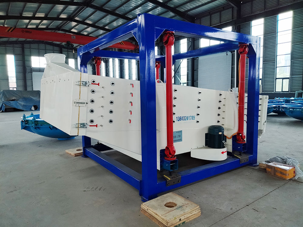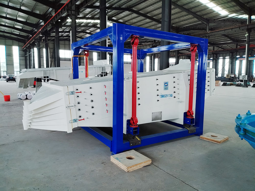 產(chǎn)品描述: 方形搖擺篩系列篩機(jī)是滿足大產(chǎn)量、高精度需求的用戶而研發(fā)設(shè)計(jì)的一種篩分設(shè)備。它廣泛用于化工、冶金、礦業(yè)、飼料業(yè)、食品等多個(gè)行業(yè)。尤其適用于重堿、食鹽、樹脂、復(fù)合肥、大小顆粒尿素、飼料、還原鐵粉、氧化鋯、陶粒、重晶石等 工作原理 1.方形搖擺篩是采用了進(jìn)口普通電機(jī)做傳動源,并且引進(jìn)德國技術(shù),傳動方式為仿人工式。 2.運(yùn)動軌跡為向前向左右畫橢圓形軌跡,從而使物料貼近網(wǎng)面,在篩網(wǎng)上面也采用橢圓曲線運(yùn)動,使物料在曬面上停留時(shí)間長久,從而達(dá)到有效篩分?! ‘a(chǎn)品特點(diǎn) 全封閉的結(jié)構(gòu),粉塵不飛揚(yáng),采用偏重平衡,使篩機(jī)振動小、噪音低。符合環(huán)境環(huán)保要求。 組合圓周、橢圓、直線三種運(yùn)動方式,篩分效果好。適合多種物料篩分。 配備自動張緊和自動清潔的篩網(wǎng)安裝系統(tǒng),使篩網(wǎng)利用率高、壽命長,換網(wǎng)結(jié)構(gòu)簡便快捷?! 〖訌?qiáng)型機(jī)座,保證設(shè)備運(yùn)轉(zhuǎn)更平衡,亦可根據(jù)實(shí)際場地情況采用吊掛式結(jié)構(gòu)滿足客戶改造需要。 改進(jìn)鋼絲繩吊掛結(jié)構(gòu),避免鋼絲磨損?! 蓪雍Y框設(shè)計(jì);也有三層篩框的機(jī)型供客戶選擇?! ∮糜诜蹱罨蝾w粒飼料的篩選和分級,也可用于飼料廠原料的初清,以及大、中型飼料廠二次粉碎后中間產(chǎn)品的分級 維修保養(yǎng) 1.搖擺篩在進(jìn)行開機(jī)之前,需要檢查篩面上物料的振動狀態(tài),并保證物料通道的暢通運(yùn)行?! ?.為了確保搖擺篩工作狀態(tài)良好,應(yīng)定期檢查篩選效率和設(shè)備運(yùn)行狀態(tài)。經(jīng)常檢查喂料機(jī)構(gòu)和清理篩面,使篩孔通暢率保持在80%以上;檢查清理橡皮球是否磨損,必要時(shí)進(jìn)行更換,以保持篩面具有足夠的自清能力?! ?.正確調(diào)節(jié)搖擺篩的喂料裝置,使物料層按篩面寬度均勻穩(wěn)定地進(jìn)入工作篩面;避免物料集中于篩面局部位置,影響篩理效果?! ?.如果搖擺篩帶有除塵裝置,開機(jī)順序?yàn)橄乳_相關(guān)風(fēng)機(jī),然后啟動振動機(jī)構(gòu),待設(shè)備運(yùn)行平穩(wěn)后再開始進(jìn)料正常工作?! ?.搖擺篩在使用中,它的主要磨損部件就是篩網(wǎng),因此篩網(wǎng)的檢查是非常重要的,并在日常的檢修中,對篩網(wǎng)進(jìn)行及時(shí)的更換維維修