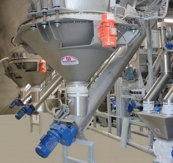 產(chǎn)品描述: 螺旋給料機是集粉體物料穩(wěn)流輸送、稱重計量和定量控制為一體的新一代產(chǎn)品;適用于各種工業(yè)生產(chǎn)環(huán)境的粉體物料連續(xù)計量和配料;采用了多項**技術(shù),運行可靠,控制精度高;尤其適用于建材、冶金、電力、化工等行業(yè)粉體物料的連續(xù)計量和配料?! ÷菪o料機把經(jīng)過的物料通過稱重橋架進行檢測重量,以確定膠帶上的物料重量,裝在尾部的數(shù)字式測速傳感器,連續(xù)測量給料機的運行速度,該速度傳感器的脈沖輸出正比于給料機的速度,速度信號和重量信號一起送入給料機控制器,控制器中的微處理器進行處理,產(chǎn)生并顯示累計量/瞬時流量。該流量與設(shè)定流量進行比較,由控制儀表輸出信號控制變頻器改變給料機的驅(qū)動速度,使給料機上的物料流量發(fā)生變化,接近并保持在所設(shè)定的給料流量,從而實現(xiàn)定量給料的要求。 主要特點 1、專用于粉狀物料的計量和控制?! ?、給料螺旋具有獨特的穩(wěn)流結(jié)構(gòu),在整個進料口截面上料粉均勻下沉,不易結(jié)拱,不易沖料?! ?、擺線針輪減速電機,保證了長期穩(wěn)定運行?! ?、穩(wěn)流螺旋采用變螺距結(jié)構(gòu)和出口溢流方式,有效的解決了物料的沖料難題(產(chǎn)量>60T/H采用雙管穩(wěn)流)。 5、計量螺旋秤采用3只高精度傳感器(拉力)直接稱重結(jié)構(gòu),成功的解決了杠桿稱重造成的誤差,使計量精度大為提高。 6、采用數(shù)字采集模塊,有效分辨率高達100萬;采集速率50次/秒;年漂移小于50PPM;溫度漂移小于50PPM?! ?、密封結(jié)構(gòu),減少粉塵外揚。